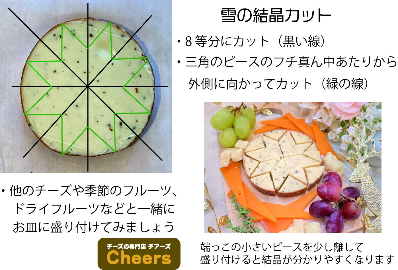 上記チーズお買い上げでご希望の方に切り方図解(紙)差し上げますのでお気軽にお声かけください😊